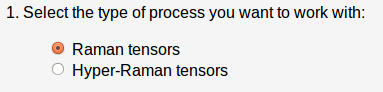 The program calculates the Raman or Hyper-Raman tensors and the expresion for the intensity for each one orientation domain. Given the high and low symmetry structure and the transformation matrix which relates both structures the program calculates the cosets decomposition between the group and the subgroup and it identifies which are the orientational domains in the decomposition. Once the programs has the orientational cosets representatives it transform the tensor (Raman or Hyper-Raman) taking the cosets representatives as the transformation matrix. From the transform tensor it calculates the expressions for the intensity.
