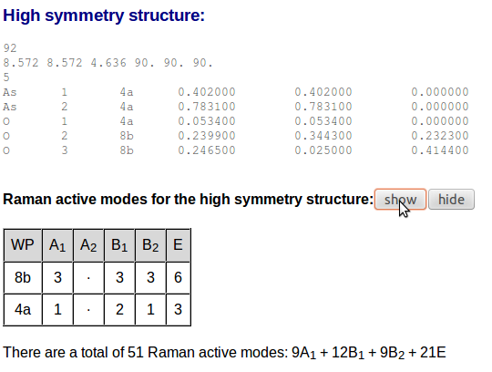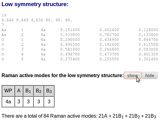 In the first part of the output one can find the information that has been introduced and the information abut the Raman activity for each one of the structures: