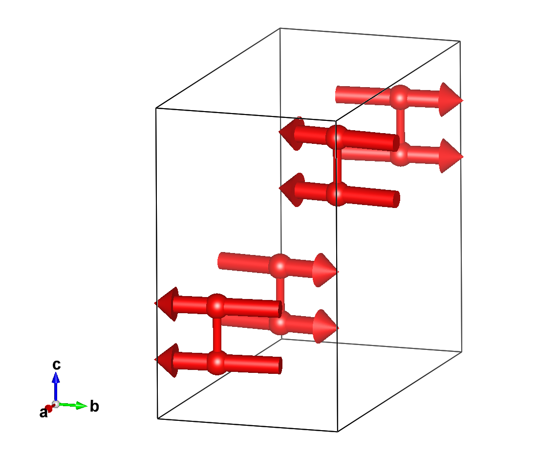 Positions and magnetic moments of all atoms in unit cell, with magnetic moment relations explicitly given: